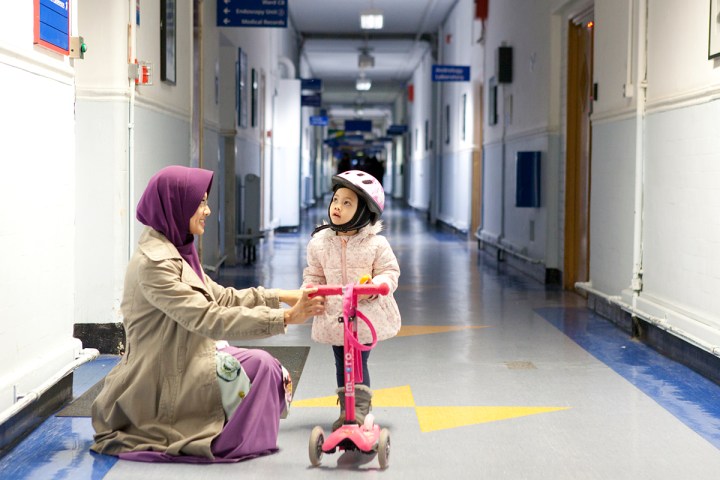 Bagaimana Mbak mengupayakan agar si kecil tetap tumbuh sehat dan ceria selama merantau di Inggris menemani ibunya studi? Siapa yang menemani si kecil saat Mbak harus ke kampus?