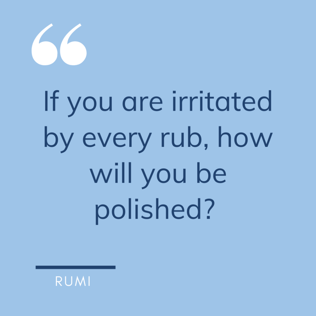 Seorang teman mengutip Rumi dalam akun medsosnya: “If you are irritated by every rub, how will you be polished?” Inilah nasihat yang sengaja saya pampang di atas meja kerja saya di kampus, yang menjadi obat hati saya saat sedang galau terkait riset yang tak kunjung menunjukkan titik terang.