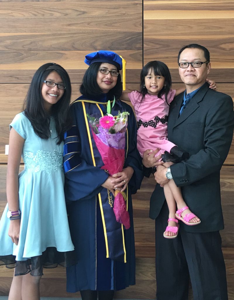Tak hanya urusan finansial, tapi urusan keluarga juga menjadi tanggung jawabku. Jadi ya aku harus bisa masak, bebersih rumah, jaga anak, antar dan jemput anak sekolah. Apalagi karena baru sebulan sampai di Amerika, ternyata Diah hamil dan kami dikaruniai anak kedua yang sudah kami usahakan begitu lama. Untuk membantu Diah, kami mendatangkan Ibu dari Indonesia selama empat bulan. Tapi selebihnya ya harus kami kerjakan semua sendiri. Tuntutan PhD di Amerika sangat berat, sehingga kadang Diah harus kerja di kampus sampai tengah malam.